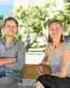 Two women smiling wearing Great North Run medals and Worldwide Cancer Research t-shirts